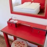 Va invitam in universul fermecat al camerei de culoarea visinei coapte. O tarancuta in costum traditional romanesc va intampina de la primii pasi si va dezvaluie misterul traditiilor si elegantei portului popular. Admirati frumusetea motivelor romanesti, care altadata dadeau viata covoarelor tesute manual acasa la razboi. Acum, mobilierul din lemn de brad pictat le este punte peste ani si le poarta cu mandrie mostenirea. Natura va bate la fereastra si va invita sa va bucurati de aer proaspat si de sanatate.