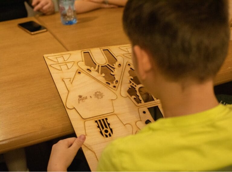 În atelierul de bricolaj, fiecare familie își construiește propriul cufăr în care va ține comoara proprie: Cheia Bucuriei în Familie.
