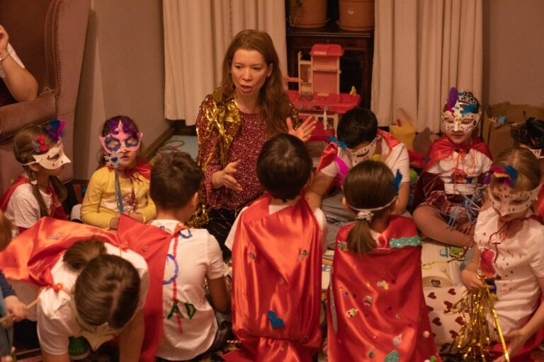 După o masă regală și odihna bine-meritată, copiii sunt invitați la un atelier de teatru în care antrenează imaginația, pun emoții și creativitate în cuvinte, folosind costume și jocuri de rol.
